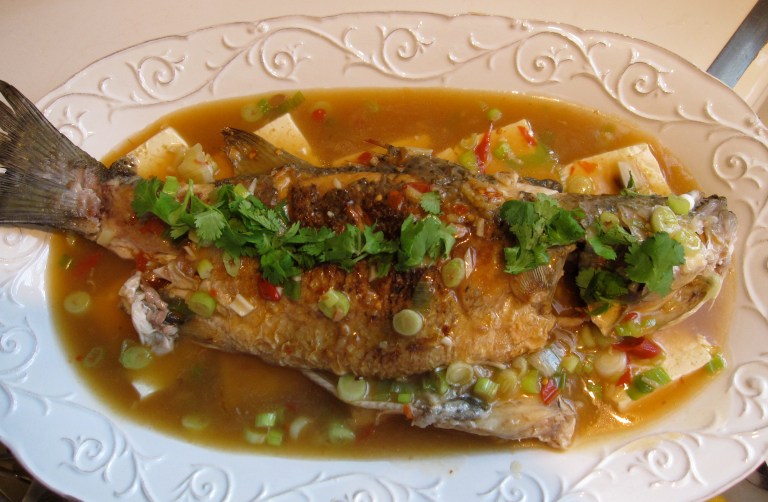 when i was younger, my family would go to this place in the richardson chinatown called lee’s catfish and they had this awesome signature dish called dou ban yu, or chili bean paste fish. i don’t remember a lot from my early childhood, so this place must have had realllyyy good fish for me to still remember it. sadly, the owners have retired and they’ve closed shop. i’ve had this dish at other restaurants and still none compare to lee’s. …and neither did mine. but, hey, first time cooking a whole fish! yay!