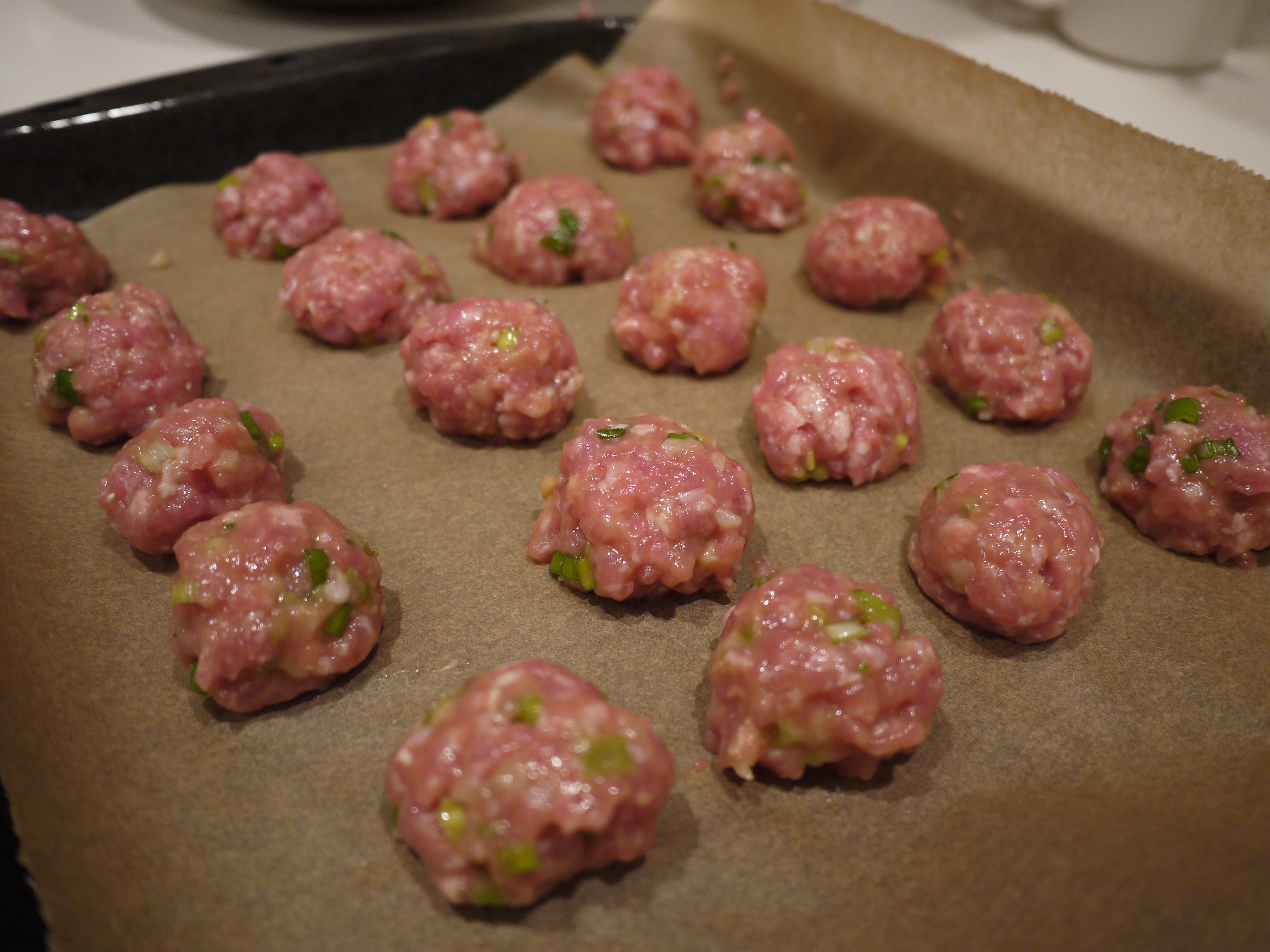 Rice balls. Teehee. So…I’m currently in a steamer recipe phase — soon to be pressure cooker phase. Steamed pearl rice balls are one of the items you are supposed to eat for Chinese New Year, but I love eating them all year round, so I made them for Christmas to share with friends. Yes, I’m ridiculously behind on my posts. You make them very similar to dumplings – in fact, they are probably easier to make than dumplings because you don’t have to wrap them.