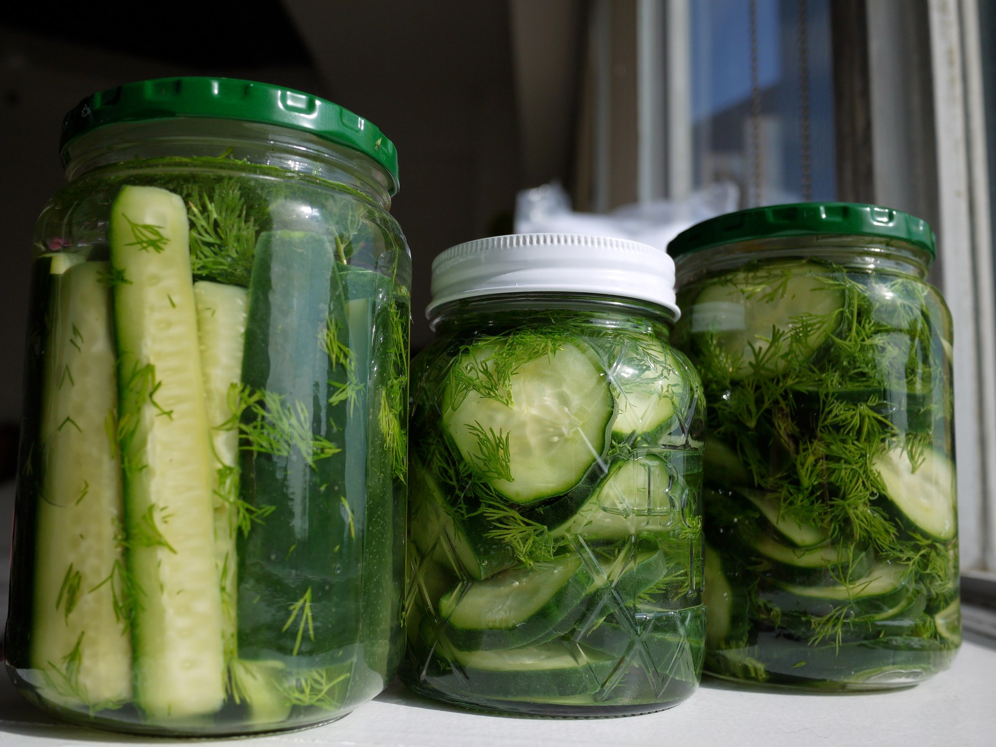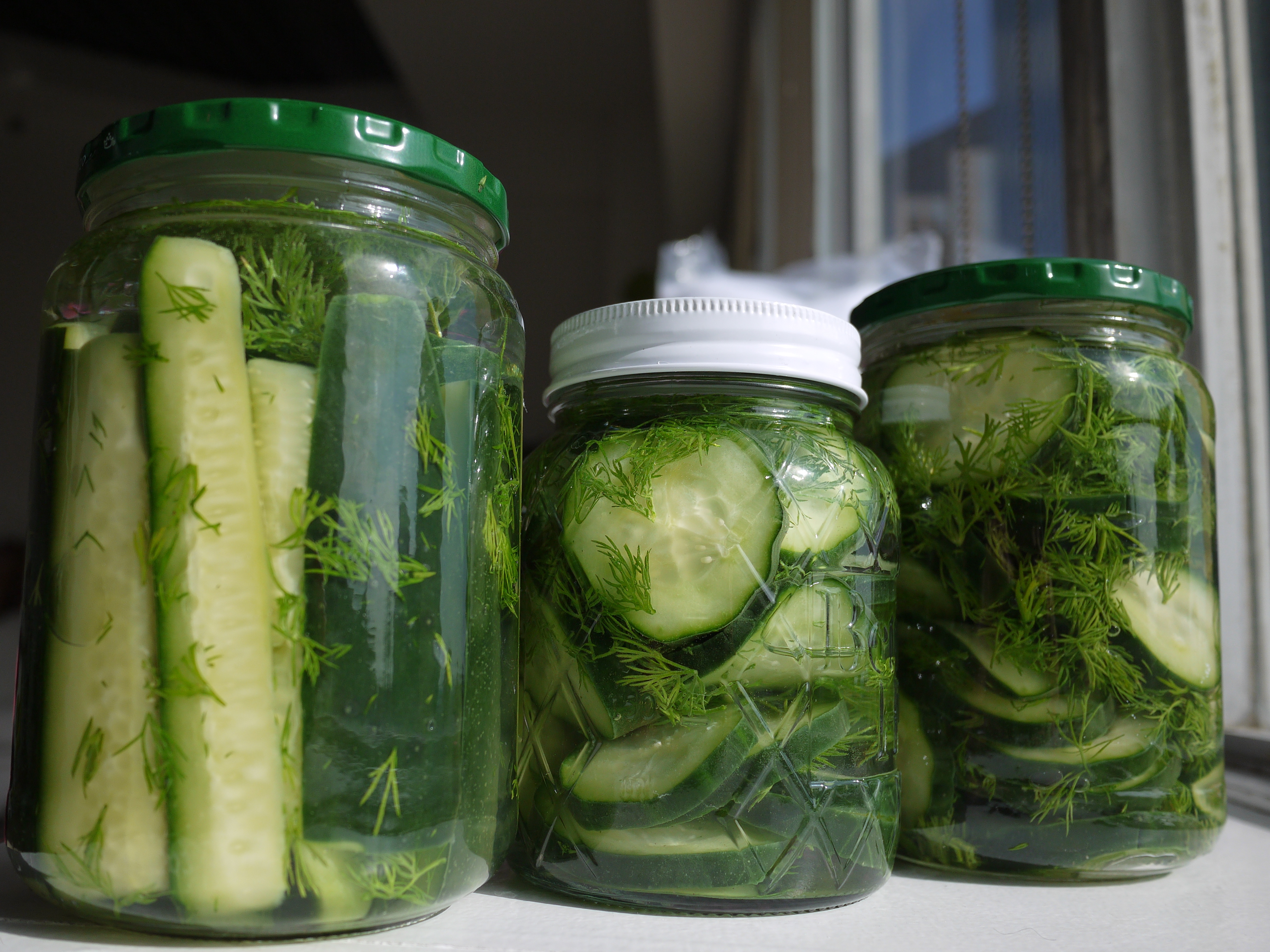 Bring three cups of vinegar and two cups of water to a warm semi-boil. Place the cucumber spears/slices and dill weed into the pickle jars. Pour the vinegar mixture into the jar and seal. Refrigerate for at least one week. The longer, the better. Yes, waiting one week is the hardest part.
