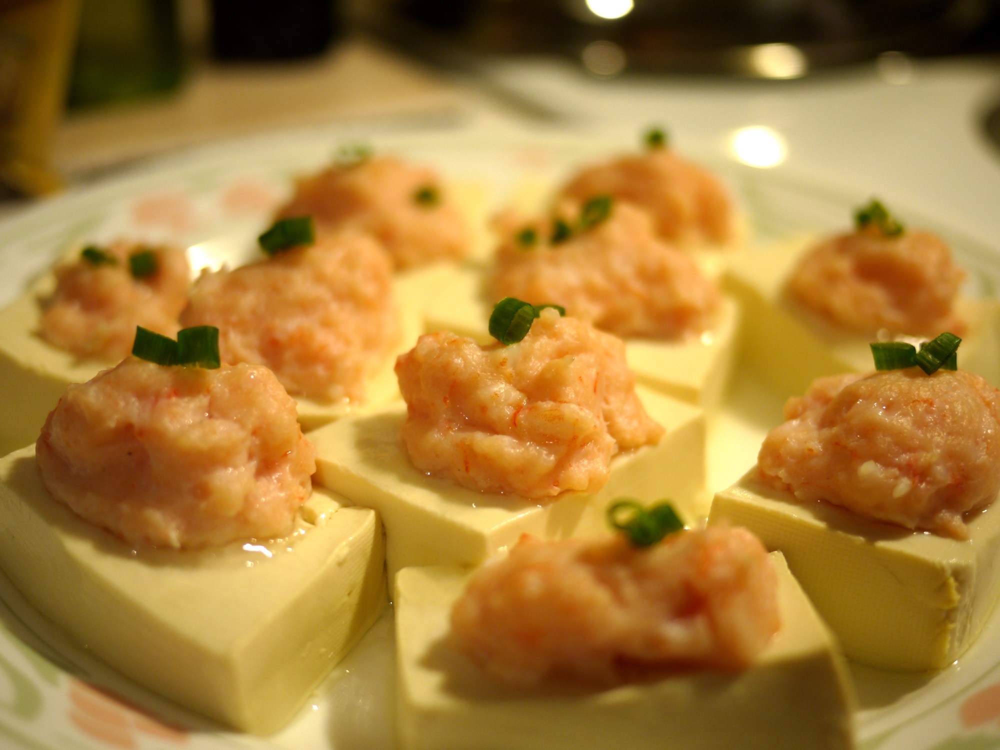 One of my dear childhood friends, Teresa, swung through Dallas this summer before heading back to b-school. She probably doesn’t know this, but she is one of the people that has positively influenced me to love cooking as much as I do today. She used to make THE BEST fried rice in high school for me. Now, I’m returning the favor and cooking for her. We made a bunch of things that I’ve had bookmarked for a while, including steamed tofu and minced prawn. The recipe we followed was taken from Christine’s recipes, which I have found extremely helpful in cooking Asian dishes.