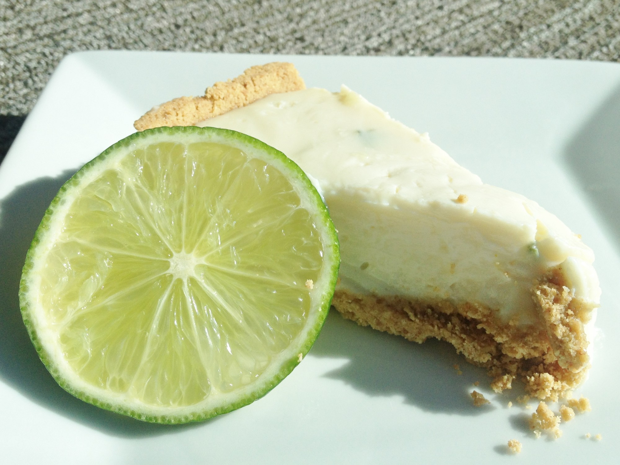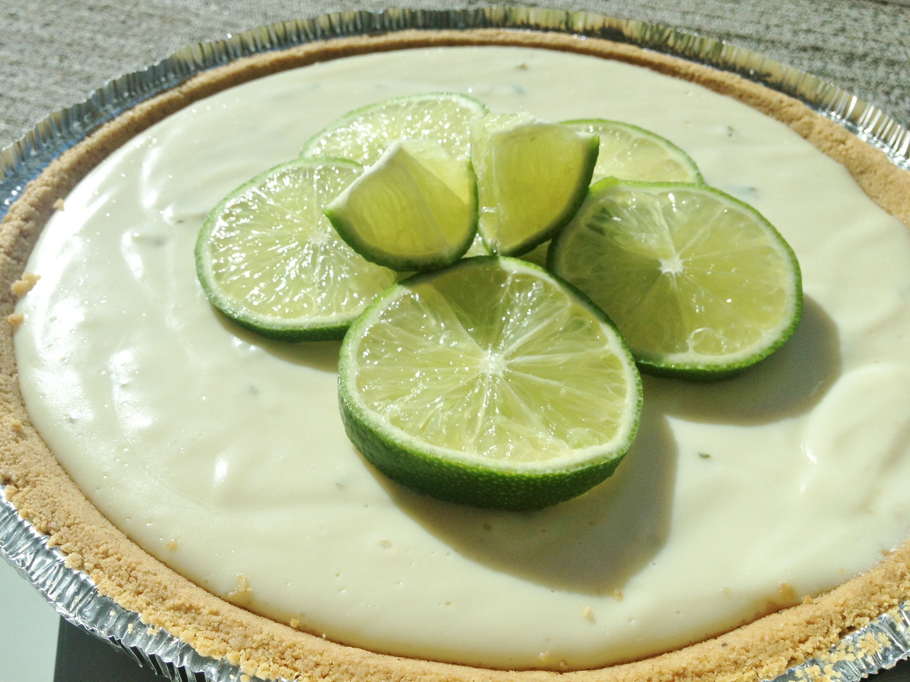 my co-worker, james, finally hit the big 2-5 a few weeks ago. what a baby!! james loves barbara, his cats, ice cream sandwiches, salmon sashimi, whiskey, playing computer games, making processes more efficient, and anything with bacon. 🙂 for his birthday, i made him a key lime pie (his favorite). one time he tried to make a key lime pie himself, but he got overzealous with the lime zest. i made sure i zested the proper amount in this one. this was very easy to make, as it was more cheesecake-y than fluffy/meringue-y. took no more than 15 minutes tops to make from start to finish. the recipe is from allrecipes. it is no wonder that james liked the pie….the entire thing was condensed milk and sour cream!