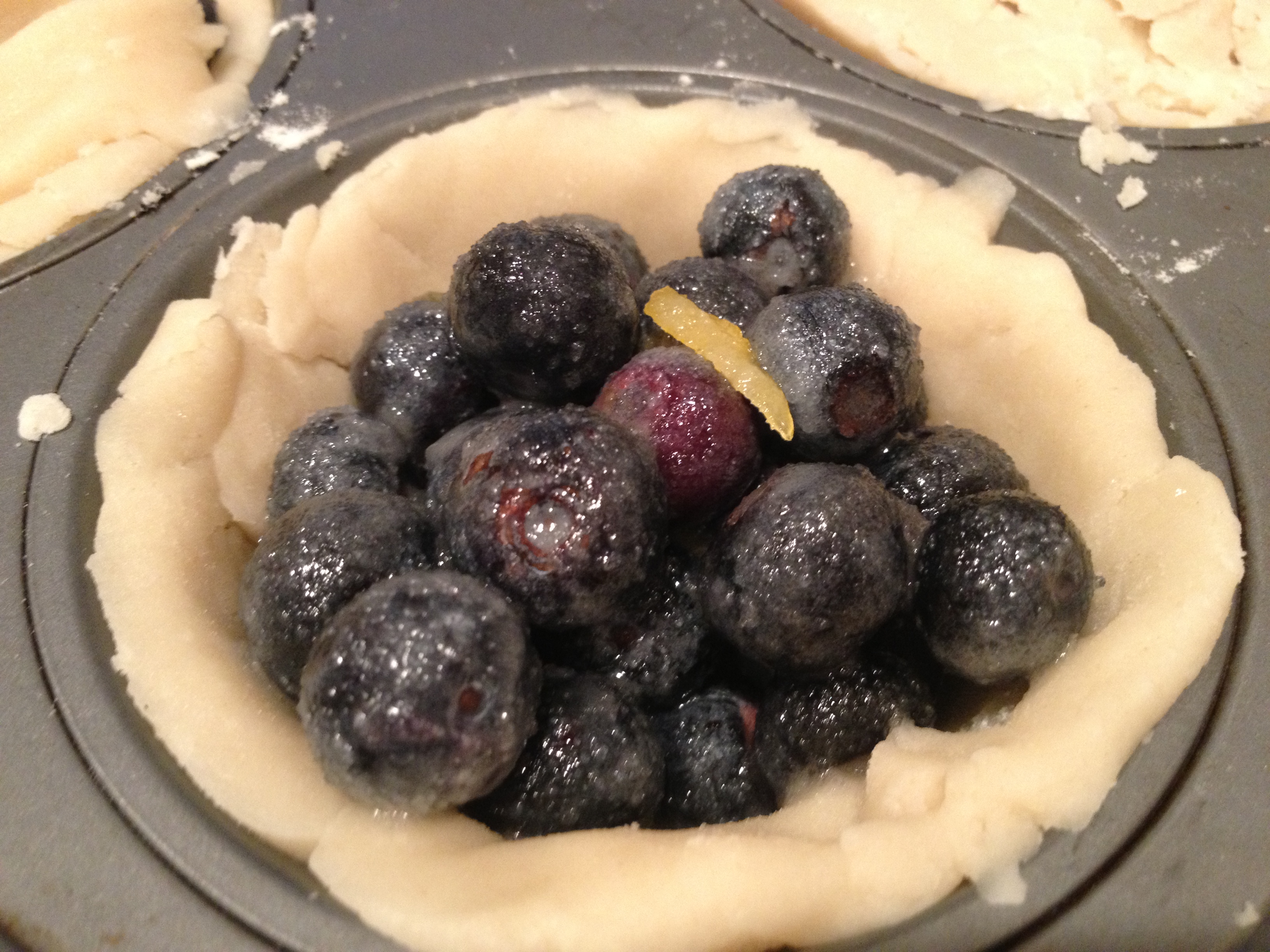 After having to postpone our annual ladies blueberry picking trip back two times, we finally went on opening day, June 29. Third time’s the charm! Except….one of the problems with going on opening day is that you have to get to the farm early and opening day usually isn’t during the peak of the season. We arrived at 9:30 am whereas the crowds got there at 7 am. Needless to say, it was slim pickings for our group. We were out there for 1.5 hours and on average, we managed to pick only 3 pints each. We got too spoiled last year where our buckets were overflowing after 30 minutes. Last year, we made LOTS of blueberry jam. This year, I decided to do something less labor intensive and make mini blueberry pies. Unfortunately, whenever you make “mini” of anything, the amount of effort put in just doesn’t seem quite worth it…..all for a measly, “so cute!”