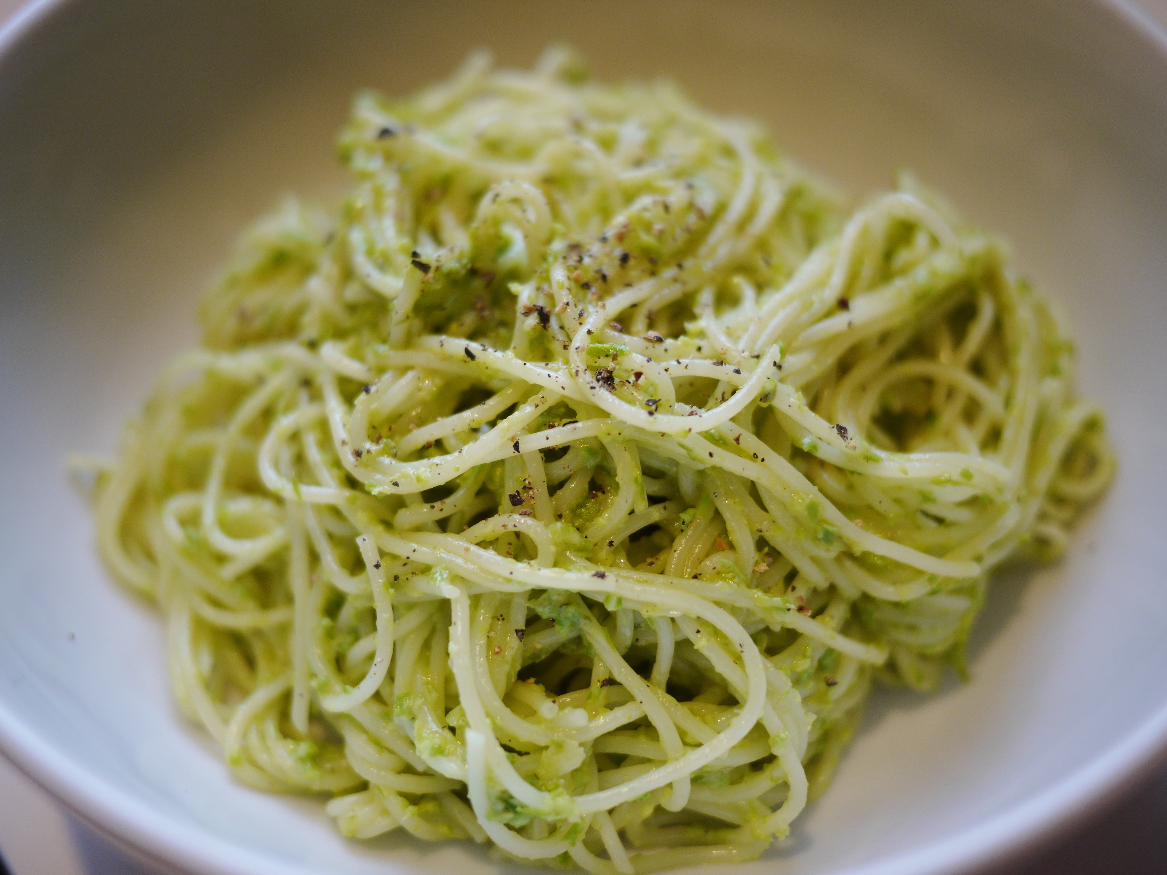 Serve with a thinner kind of pasta like angel hair/capellini or spaghettini.