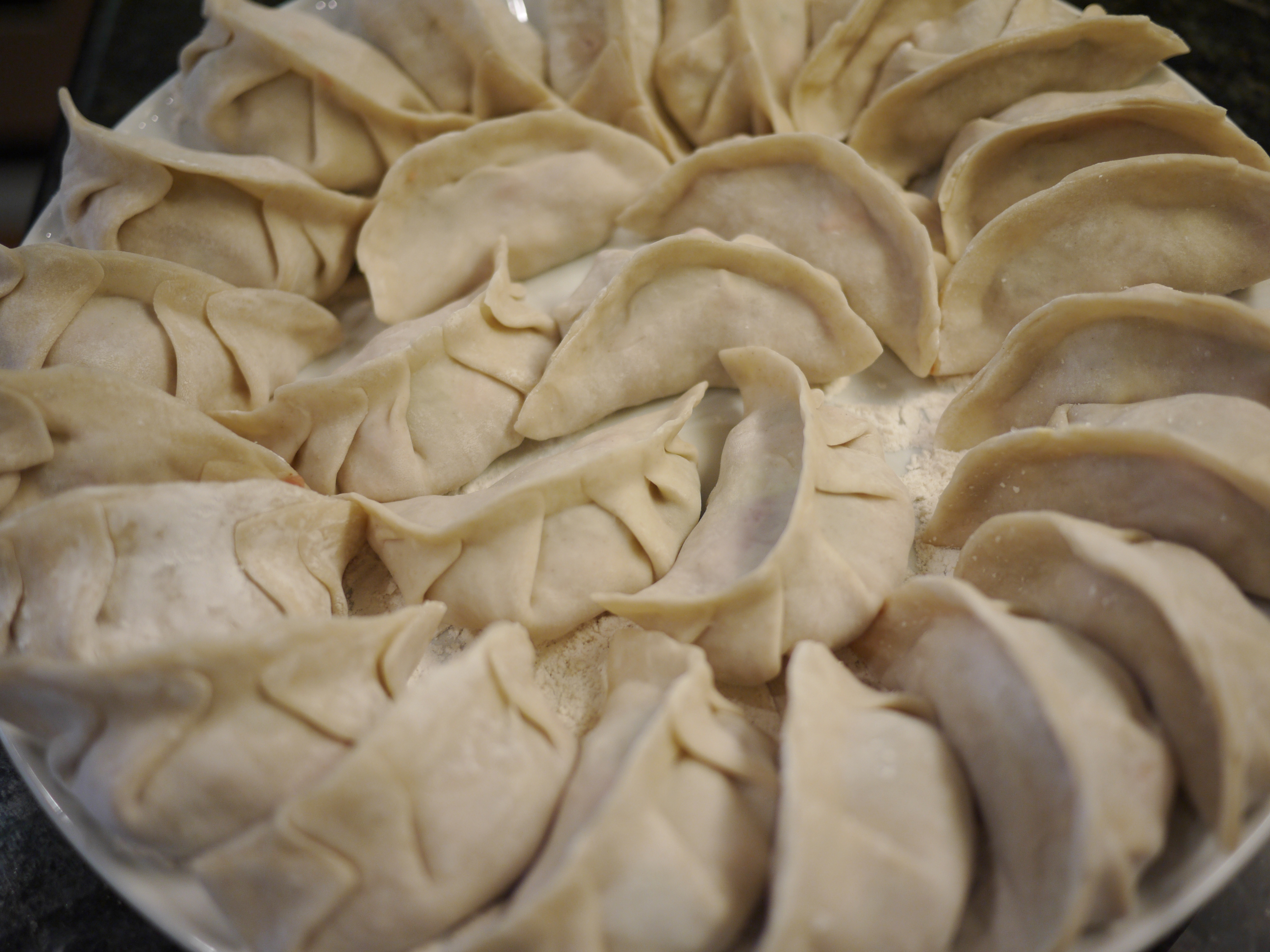 After some good girl talk and gossip, time flies, and soon enough, you’ll have 100+ potstickers wrapped! Note: place flour underneath the wrapped dumplings so that they don’t stick to your plate.
