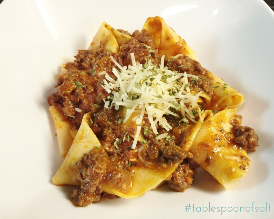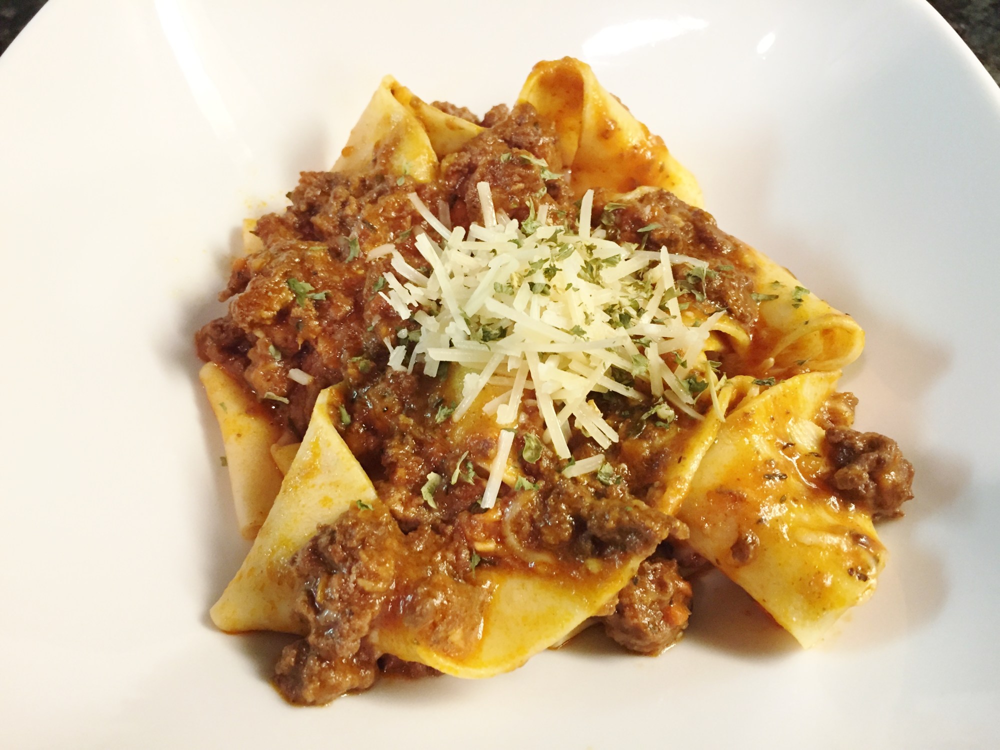 I used Anne Burrell’s “Pasta Bolognese” recipe (watch the video!) as a guideline and switched/added a few things of my own.